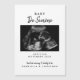 Um ímã simples e moderno com tipografia preta e branca com uma foto de sonograma para anunciar sua gravidez para familiares e amigos.