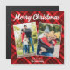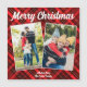 Um padrão clássico de tartã vermelho-xadrez atrás de sua colagem vertical de fotos de duas famílias de férias para um cartão magnético festivo e tradicional de Natal Feliz. Ímanes de Natal simples e bonitos que incluem duas fotografias.