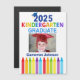Este divertido ímã de lançamento da graduação do jardim de infância em 2025 apresenta um legal boné acima de um escrevendo colorido e uma fileira de lápis no arco-íris. Formando de jardim de infância bonito mantém ímãs em cores divertidas pelo último dia da escola primária com a foto do seu filho e o nome personalizado em azul. Parabéns ao nosso formando mais gentil!