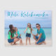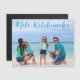 Cartão magnético de Natal personalizável para a família de praia, com sua foto tropical favorita ao sol. Adicione uma fotografia de cheio da sua memória favorita das suas férias na ilha à costa na frente e uma atrás. Um belo cartão de ímã de feriado costeiro com um design limpo, moderno e bonito roteiro azul sobre a fotografia.