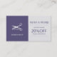 Elegante e simples, consulte uma placa de amigo para uma lista de cabeleireiros barbeadores em cinza clara e azul marinho com um logotipo de tesoura (você pode substituí-la pelo seu) e um padrão estrelado no verso.