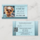 Cartão de visita de referência profissional com sua própria foto e seu logotipo (opcional) em um simples fundo azul. No verso há um modelo de código QR opcional e fácil de personalizar (também opcional para uso). Você pode guardar a foto para um negócio ambulante de cachorro se quiser, ou substituí-la. Este cartão de referência pode ser personalizado para qualquer negócio.