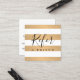 Cartão de referência quadrado moderno para profissionais de beleza. Design simples com dourado falso e listras brancas, totalmente personalizável.