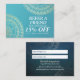 Yoga Malhação Studio / Instrutor de Meditação / Treinador Pessoal / Treinador de Vida / Healer / Mestre de Reiki / Modelos de cartão de negócios de Nomeação de Cartão de Referência de Terapia de Massagem - Foil Dourada Faux de Chic Moderna Símbolos Floral Mandala em Cor Azul Cristal / Azul Verde Teal.