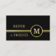 Cartão De Indicação Monograma personalizado de ouro elegante a preto