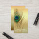 Cartão De Indicação Pena de Pavão Dourada Exótico Boho Indique um Amig