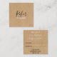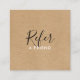 Um simples cartão de referência rústico e elegante em kraft, com tipografia de script de assinatura em um fazer de fundo rústico em kraft, é um cartão de visita perfeito para uma grande variedade de profissões, incluindo planejador de casamento, planejador de eventos, florista, spa, cabelos e maquiagem, consultor de beleza, esteticista ou qualquer outro consultor de beleza. Adicione seus detalhes de contato de cheio ao conjunto inverso da tipografia moderna. Projetado por Thisnotme©