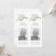 Dois marcadores de recordação são impressos em um cartão de 5" x 7" que você precisará cortar em meio- marcadores serão de 2,5" x 7" quando cortado. Uma elegante orquídea branca, e uma foto na frente e a oração do Senhor, ou qualquer oração, são impressas no verso. Bonita para se dar em um funeral, serviço de memórias, celebração da vida, aniversário da morte ou em notas de agradecimento. CORRESPONDENTE a itens na nossa coleção.