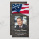 American Flag Memorial Funeral Prayer Card. Este cartão de oração militar apresenta uma bandeira dos Estados Unidos da América sobre um fundo de madeira escura. Frente "Na Memória Adoradora" Personalize este cartão de oração do funeral militar com sua pessoa amada, foto, nome e datas, e sentimento. Traseira - Poema 'Depois', que pode ser personalizado, por favor, chame a atenção se você quiser um design com um poema específico diferente de. Este cartão de oração de Bandeira Americana é um guardião precioso, serviços fúnebres militares e um serviço de memorial veterano ou celebração da vida. Em Amar Memória Militar Memorial Americano Cartas De Oração De Bandeira. COPYRIGHT © 2020 Judy Burrows, Black Dog Art - Todos Os Direitos Reservados. Cartão de Indicador de Oração do Memorial Patriótico