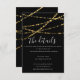 Detalhes do casamento decorados com flores delicadas em rosa dourado e luzes douradas