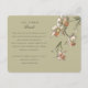 Este cartão de informação de casamento é uma verdadeira peça de arte, apresentando um par de papagaios numa sinfonia de verde-jade e azul-safira, empobrecida num cabide de ouro ornamentado em meio a uma cascata de orquídeas lúcidas. As flores desabrocham em tons de pêssego macio, delicada pincelada e marfim cremoso, colocados contra um sofisticado fundo de oliveira. O reverso do cartão oferece um roteiro limpo e elegante em um cenário harmonioso, fornecendo aos convidados detalhes essenciais como direções, especificações de cerimônia e preferências de presentes, tudo ecoando o movimento tropical opulente.