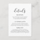 Cartão de informação de convidado de casamento: não se esqueça deste cartão útil com todos os seus importantes detalhes de casamento, como localização, alojamento, transporte, etc... Uma coleção elegante de design, ideal para um casamento chic e moderno. Cores de texto totalmente personalizáveis.