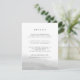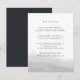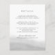 Projetado para coordenar com a nossa coleção de casamento Mist, este cartão de informação de convidado apresenta uma lavagem de cor-d-água pura de cinzas pálidas ao longo do fundo, ancorando os seus principais detalhes de casamento, como acomodações de hotel, informações de recepção de boas-vindas, site e muito mais. Adicione seu texto personalizado usando os campos fornecidos e use a função Personalizar para ajustar fontes, tamanhos e espaçamento.