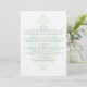 Simples com elegância chique descreve este sofisticado Cartão de Informação de Casamento com Damasco Sutil com um fundo de florescimento de damasco verde musgo claro. Este cartão de informações moderno é perfeito para um casamento tradicional e pode ser facilmente personalizado com os detalhes do seu casamento. Para mais opções de personalização, clique no botão Personalizar.
