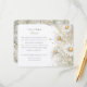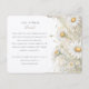 Este belo cartão de informação de casamento apresenta um tema delicado e elegante de margarida selvagem, perfeito para um jardim romântico ou casamento rústico. O lado frontal exibe um arranjo refinado de margaridas brancas com pistas de amarelo macio, marfim e tons verdes sábios. O estilo de aquarela pintado manualmente adiciona um toque de encanto artístico, dando ao cartão um eterno e um toque etéreo. O verso continua o tema com ilustrações mais detalhadas da margarida, complementadas por um sutil fundo bege e caligrafia fluente. Este cartão é ideal para compartilhar detalhes adicionais com seus convidados de casamento, incluindo instruções, especificações de cerimônia e preferências de presentes. A combinação de ilustrações botânicas e tipografia clássica cria uma estética sofisticada e serena que complementará perfeitamente seus convites para o casamento.