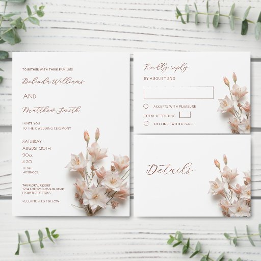 3D textured boho flowers wedding enclosure card. With a headline in an elegant handwritten script.