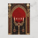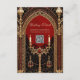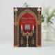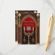 A escura elegância do estilo gótico. O fundo é um vermelho profundo e rico que oferece um contraste dramático aos sotaques dourados brilhantes. O design do estilo gótico combina elegância e misticismo.