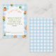 Celebrate the sweetest news with our Little Cutie Is on the Way baby shower diaper raffle enclosure card! This charming design features a playful blue gingham background paired with bright oranges and cheerful citrus accents for a fresh, sunny look that’s perfect for welcoming a new baby. The adorable little cutie theme adds a fun, modern twist that guests will instantly love, making your shower feel warm, joyful, and unforgettable from the moment they open the invite. Perfect for spring and summer celebrations, this invitation blends classic patterns with vibrant fruit illustrations to create a look that’s both timeless and trendy. Whether you’re planning a cozy brunch, garden party, or citrus-inspired shower, this design sets the tone for a celebration full of sweetness and smiles. Complete your party style by shopping the rest of the Little Cutie collection! From matching decorations to coordinating games and signage, you’ll find everything you need to create a beautifully cohesive baby shower theme your guests will adore.