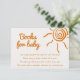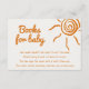 Se você procura um elegante e único aqui vem o pedido de livros do filho para seu chá de fraldas, este é perfeito para você. E, como podem ver, apresenta uma escrita manual em cor de laranja sobre fundo creme. E do lado direito você tem um sol desenhado pela mão e seus raios. Para combinar com o chá do bebê aqui vem o sol do filho.