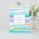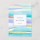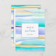 Cartão de detalhes de cerimônias de casamento de arte moderna com QR personalizado. Simples design de arte moderna ideal para uma praia contemporânea ou casamento tropical. Outros itens correspondentes e diferentes formas de cores disponíveis. Personalize com os seus próprios detalhes de casamento, instruções, agenda, alojamento e doação, bem como um link para o seu site de casamento, se necessário. © Linhas originais da maré tropical de abstrato de arte original em azul, xisto aqua, amarelo-manteiga e branco pintados com tinta e guache e desenhados por Sarah Trett para www.mylittleedenweddings.com
