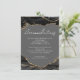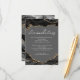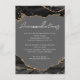 Cartões de acomodação de casamento variegados em pedra de ágata falsa brilhante preta e dourada. Confetes de folha dourada falsa e pinceladas de tinta. Fonte script destaca com fonte de nome serif legível. Fácil de ajustar para as necessidades do seu casamento. Cartões de inclusão de casamento personalizados.