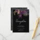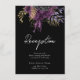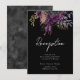 Cartões de recepção de casamento florais roxos e pretos góticos. Folhas de falso ouro em relevo. Fonte script destaca com fonte de nome serif legível. Fácil de ajustar para as necessidades do seu casamento. Cartões de enclosures de casamento personalizados.