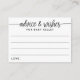 Estes cartões de conselho simples são excelentes para o seu chá de fraldas, ou qualquer festa! Mande-os com seus convites ou mande-os para a sua festa. O tamanho pequeno os torna perfeitos para colocar em um vidro como um guardião. Adicione seu próprio texto no formulário modelo. O verso é vazio para mais escrevendo ou acesso aos menus de cor e fonte avançados escolhendo "personalizar mais" para adicionar seu próprio texto ou cor ao verso.