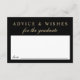 Cartão preto e ouro elegante para os anúncios de graduação e convites de festas para familiares e amigos expressarem seus conselhos e esperanças para o futuro do formando. "Aconselhamento e Desejos para o Formando" está na escrita clássica e na tipografia. Nas costas, personalize com o nome do formando, a escola e o ano de aula.
