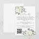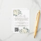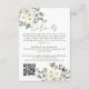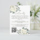 Adicione um toque de charme elegante ao seu conjunto de casamento com este Cartão de Enclausuramento de Casamento Floral em Aquarela Marfim. Com suaves flores em aquarela marfim e branco e folhagens delicadas, o design é lindamente organizado nos cantos superior esquerdo e inferior direito. No topo, "Detalhes" é escrito em caligrafia elegante em verde sage moderno, seguido pelos detalhes do seu casamento personalizáveis em escrita moderna correspondente. Um código QR escaneável fica na parte inferior esquerda para fácil acesso ao seu site de casamento, formulário de RSVP ou direções. Perfeito para casamentos rústicos, campestres, de jardim ou com tema floral, este cartão de enclausuramento é atemporal e funcional.