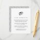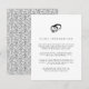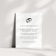 O charmoso cartão de informações para convidados de casamento preto e branco apresenta uma ilustração em estilo vintage de uma aliança de casamento e um anel de diamante no topo. Substitua o texto de exemplo pelos detalhes principais da sua celebração de casamento.