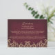 Um belo maroon bordeaux burgandy e um cartão de alojamento dourado com uma exótica fronteira de padrão de medalhão ornamental inspirada pela Índia. Esta elegante e bela inserção no estilo da Índia moderna LUXE é perfeita para um noivado, aniversário, Festa de aniversário OU EVENTO ESPECIAL DE OCASIÃO com um árabe oriental ou indonésio ARABIANO NIGHTS OU ALADDIN. Projetado por Chrissy H. Studios, LLC. Todos os Direitos Reservados.