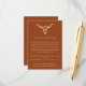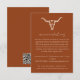 Cartão de Receção de Alojamento de Crânio de Vaca Boêmio Ocidental - Design simples e minimalista apresenta um crânio de vaca boêmio ocidental em um fundo laranja desértico. Todo o texto e cores são completamente editáveis. O verso do cartão de alojamento inclui um código QR para o site do seu casamento.
