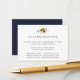 Girassóis de aquarela russa e arranjo de eucalipto, cartões de alojamento de casamento. A parte traseira da placa apresenta cor azul sólida do marinho.