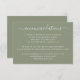 Cartão de alojamento minimalista em verde pastel, cor verde pálida para o casamento de verão na floresta. Entre em contato comigo se precisar de itens adicionais.