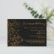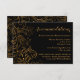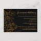 Este cartão elegante de alojamento de casamento pode ser personalizado com informações importantes para os seus convidados, tais como hotéis e reservas ou recomendações. O design apresenta um delicado design floral ornamental com flores, pássaros e folhas sobre fundo preto e de ouro. O texto combina o script manuscrito e as fontes serif para uma aparência na moda e moderna.
