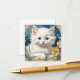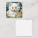 Cartões de gabinete com um gatinho no estilo Art Nouveau de Alphonse Mucha! Um gatinho branco e fofo com poses azuis com flores amarelas. Um presente bonito para amantes de gatos e colecionadores de Art Nouveau!
