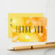 Este design amarelo e laranja negrito define o plano de fundo para a frente deste cartões de agradecimentos. Personalize o texto ou remova-o para deixar espaço para uma nota manuscrita para qualquer ocasião especial que precise de um obrigado adequado.