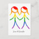 Este cartão contém um design bonito e simples a ser incluído com seus convites de casamento. O gráfico no topo mostra duas mulheres, na forma de figuras elegantes, de mãos dadas. Os números são coloridos num belo arco-íris, simbolizando amor e diversidade. Este cartão é uma maneira maravilhosa de trazer um toque coeso e significativo ao seu artigo de papelaria, ao mesmo tempo que fornece aos convidados detalhes importantes como direções, acomodações ou informações de registro.
