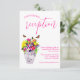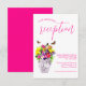 O amor está florescendo! Coleção de casamentos florais vibrantes com um buquê num vaso de mármore rodeado por borboletas e acompanhado por tipografia de guião fuchsia.