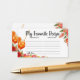 "Love at First Spritz" Meu Cartão de Recepção Favorito | Coleção de Livros de Chás de panela Citros Ajude a noiva a ser construída sua coleção culinária com nosso encantador "Amor no Primeiro Spritz" Meu Cartão de Recipiente Favorito! Esta carta encantadora complementa perfeitamente o tema "Amor em Primeiro Spritz", com laranjas cítricas vibrantes e um verde exuberante. Ele foi projetado para convidar hóspedes para compartilhar suas receitas favoritas para o casal feliz a desfrutar em sua nova vida juntos. Este cartão de receitas de chá de panela é uma adição essencial aos seus convites, assegurando que os hóspedes tenham a oportunidade de selecionar e anotar as suas receitas queridas antes do evento. As gravatas animadas de design de citros lindamente com sua estética de chá geral, criando uma sensação coesa e convidativa para sua celebração. É uma maneira maravilhosa de criar um livro de culinária personalizado cheio de pratos reais e experimentados de amigos e familiares, uma manutenção realmente única e prática para os recém-casados. Personalize facilmente este cartão de receitas com instruções claras para os convidados sobre onde escrever a receita e onde colocar o cartão no chá. Você pode personalizar os prompts, fontes, cores e layout para combinar perfeitamente o tema exclusivo do seu chá e a paleta de cores. Essas placas de gabinete de alta qualidade são dimensionadas para ajustado perfeitamente com convites padrão. Coordene estas lindas "Love at First Spritz" Minhas Cartas de Recepção Favoritas com seus convites, sinal de boas-vindas e outras papelaria para uma celebração perfeitamente coesa e memorável para a futura noiva. Clique em "Personalizar agora" para personalizar seu "Amor no Primeiro Spritz" Meu Cartão de Recipiente Favorito e ajuda a estocar a cozinha dos recém-casados com amor! amor no primeiro cartão de receita de spritz, receita de chá de panela cítrico, cartão de receptáculo de receitas favorito, jogo de receitas de chá de panela, cartão de receitas de temas laranja, atividade de chá de panela de receitas personalizadas, jogo de chá de panela botânico, receita de receitas de citrinos, receita personalizada e troca