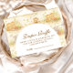 Um design doce e estilo livro de histórias da selva, apresentando suaves animais bebês em aquarela, incluindo leões, girafas e elefantes, cercados por verdejante folhagem da selva e detalhes botânicos delicados. A paleta neutra e quente de creme, dourado mel e oliva suave cria uma estética atemporal inspirada na natureza, enquanto o layout arqueado elegante deixa um belo espaço para detalhes personalizados do evento.