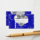 Um fundo azul real, decorado com falso brilho prateado e balões Na frente: Personalize e adicione a resposta por data. Voltar: adicione um nome, evento e data do evento.