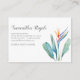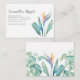 Este cartão de visita personalizado com floral em aquarela moderna apresenta um ramo de minhas folhas verdes tropicais pintadas à mão e arte de ave do paraíso, projetado com uma estética feminina e sofisticada. Personalize suas informações de contato em uma fonte serifada moderna e limpa em cinza suave para um visual polido e profissional. O verso apresenta um padrão exuberante de folhagens, tornando-o perfeito como cartão de mamãe, cartão de indicação, cartão de negócios de cabeleireiro, cartão de visita de florista ou peça de branding para planejador de eventos na Flórida. Ideal para empreendedores criativos que amam a elegância tropical com um toque moderno.