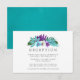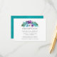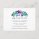 Colorida cartão de recepção de casamento com folhas tropicais e orquídeas aquarela com um azul turquesa aquarela reverso.