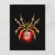 Aranha mecânica, com pá-pá de ouro, engrenagens de latão e uma lâmpada de vidro vermelha sobre fundo preto. Estilo Steampunk.