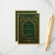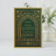 Cartão de recinto de casamento com arco árabe em ouro esmeralda