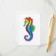 Articulação artificial, brilhante, arco-íris, cavalo de mar poligonal sobre fundo branco. Tatuagem brilhante.