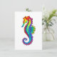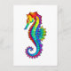 Articulação artificial, brilhante, arco-íris, cavalo de mar poligonal sobre fundo branco. Tatuagem brilhante.