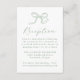 Defina o tom para sua recepção de casamento com este cartão de recepção elegante de arco verde sábio. Uma ilustração verde suave e "Recepção" na caligrafia fluente supera este layout clássico, dando espaço abaixo para os casais incluírem informações sobre o local e seu site de casamento. Este cartão complementa casamentos inspirados na natureza, jardins ou minimalistas com uma reviravolta moderna.