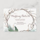 Cartão de acomodação e direções para casamento de inverno rústico e elegante em um fundo branco simples e limpo, apresentando uma moderna coroa de galhos de inverno com ramos de pinheiro. Preencha suas informações nos espaços, você pode optar por personalizá-lo ainda mais, alterando as fontes e cores das letras. ---- O cartão é adequado para casamentos elegantes e modernos de inverno rústico, sempre verde, floresta, natureza ou Natal. --- Se precisar de ajuda para personalizá-lo, entre em contato!